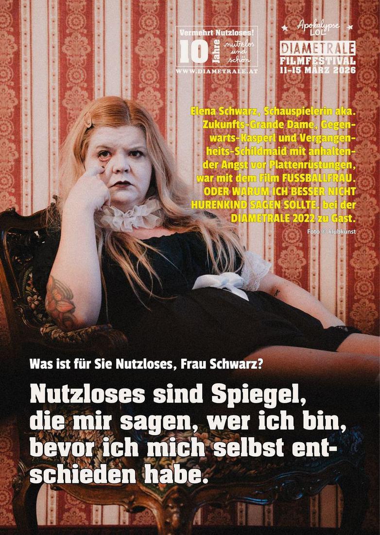 On the occasion of the 10th anniversary of the DIAMETRALE Film Festival, we asked people who have been connected to the festival in various ways over the years about the theme of “the useless.” The result is yet another useless series of images — hurrah!